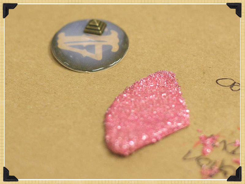 3. center accent – cover “4” circle from affirmations tag kit with glossy accents and add one pyramid stud off center. set aside to dry.