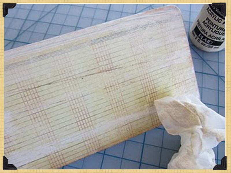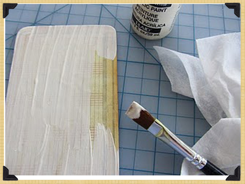 4. Working quickly, use a baby wipe to wipe away most of the acrylic paint. Because I sealed it with the gel medium I can manipulate the paint on the board without causing damage to the paper. If you don’ like the look you can wipe it away and start over or even add another color.