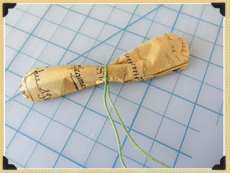 3. Cut a piece of wire (or purple ribbon) about 4′ long. I like to use floral wire that is covered in string so that it does not cut through the tissue as easily.