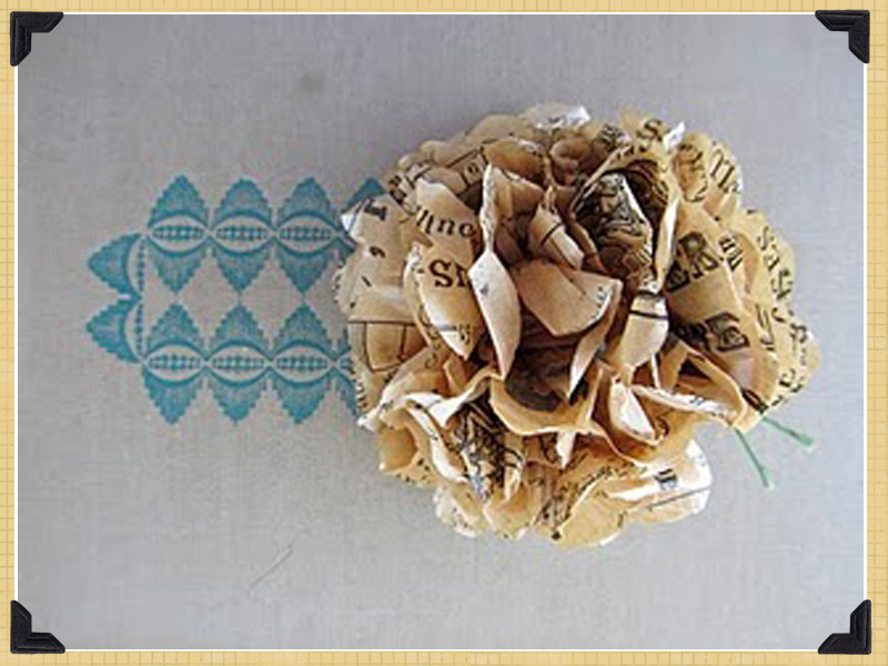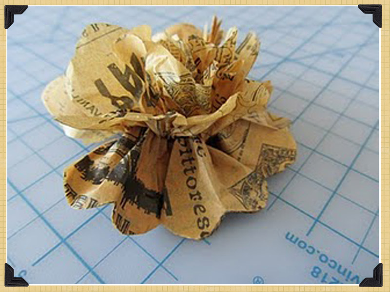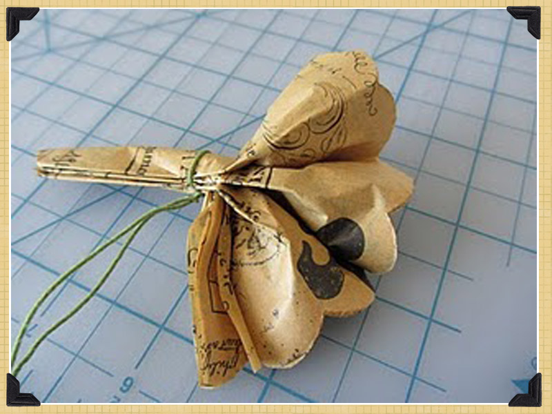 8. Here is the finished flower. I did add a loopy bow to the floral wire made from seam binding (you can see it in the final picture). Then used the wire to attach the flower to the receipt holder clip. You can also use a glue dot to stick ribbon bow on and another glue dot to attach to the clip.