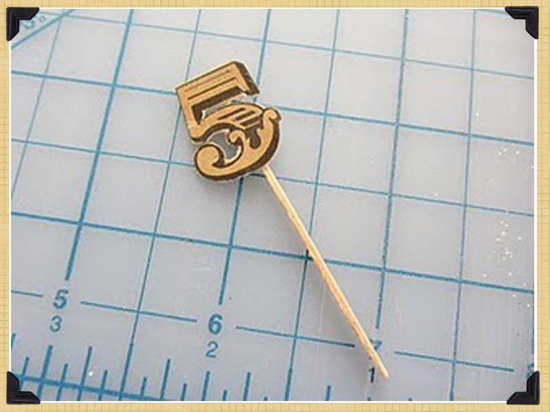 6. I cut out the number 5 from the number circles that come with Affirmations Tag Kit and glued it to a toothpick. Set aside to dry.