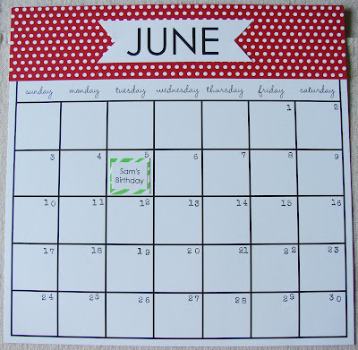 I stamped in the boxes the date and printed out on the computer the month.