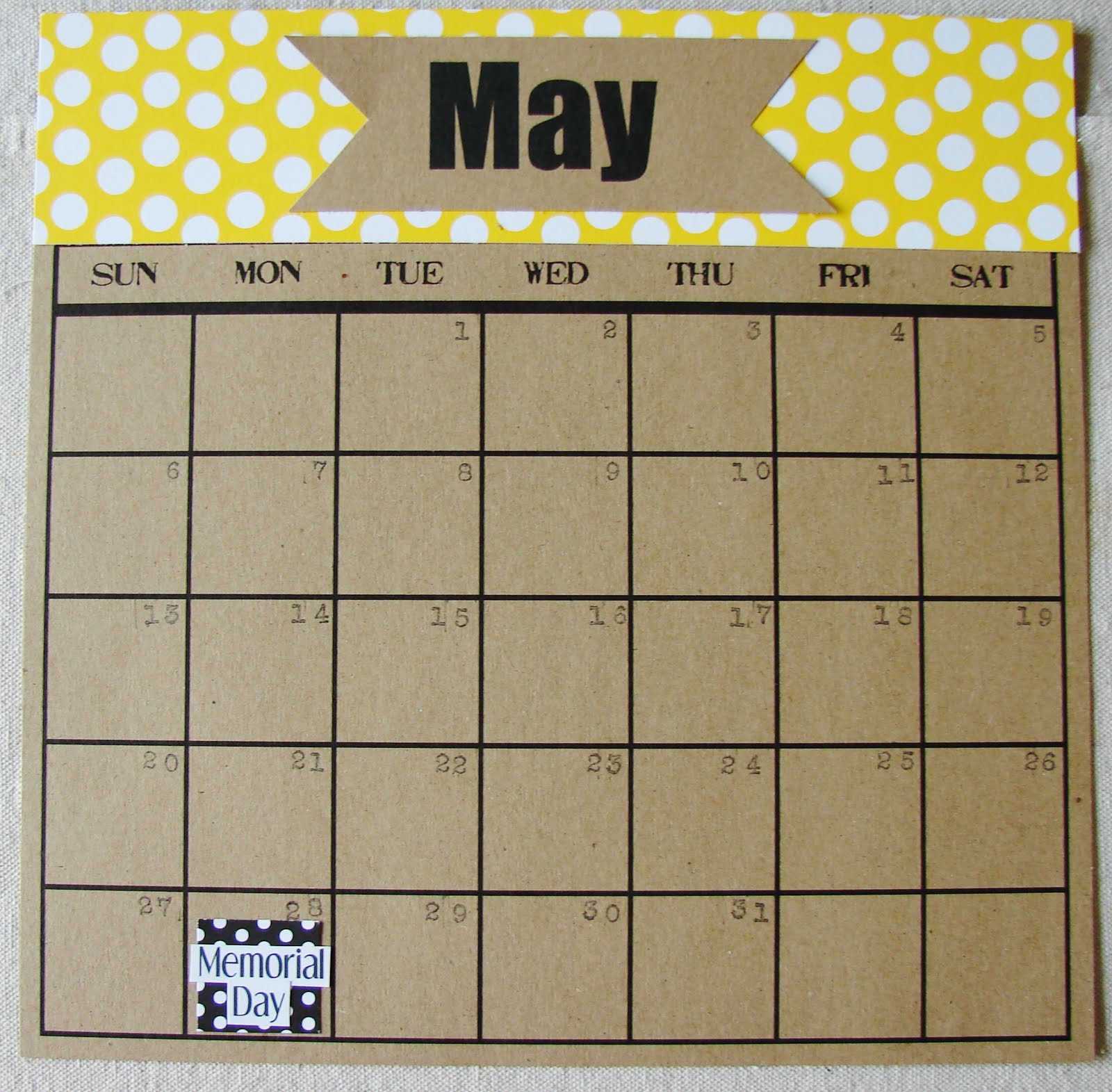Canvas Corp offers Calendar paper “blanks” in white and kraft. They are so easy to alter to any style. Here are 2 months to show you in the 2 colors.