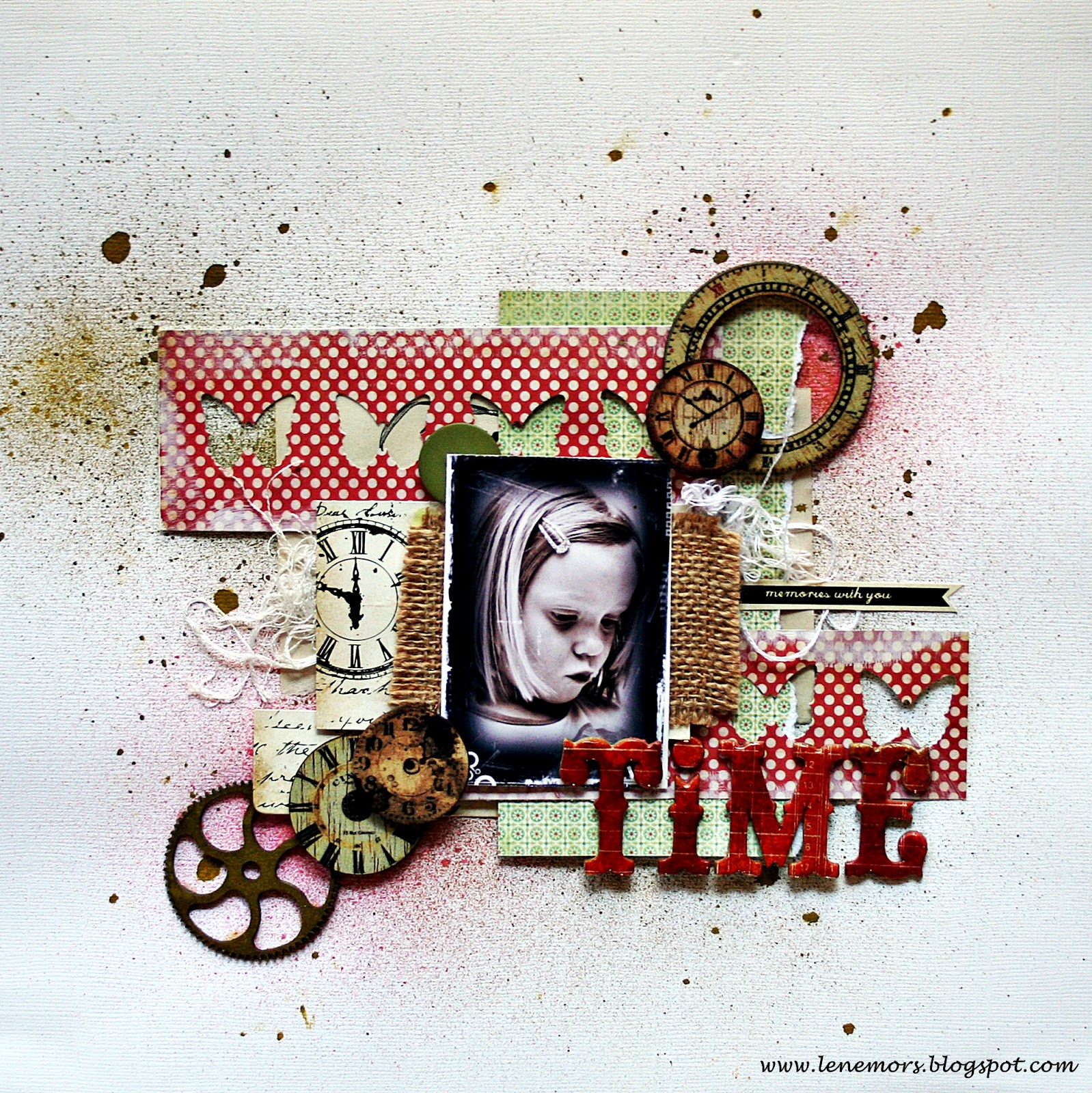 The first one is this layout. I have called it TIME. On this one I have used the colors: Olive vine ,